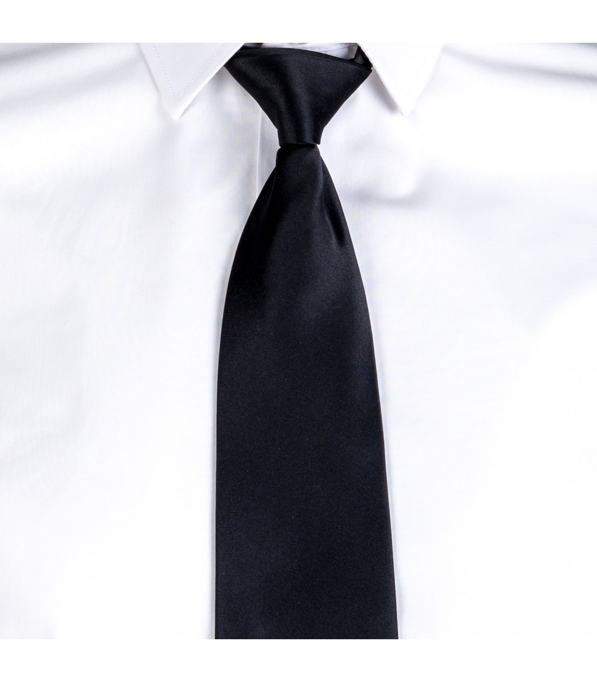 Corbata unisex con nudo fijo para facilitar su colocación y proporcionar comodidad en el uso diario. Confeccionada en RASO de 100% Poliéster, cuenta con cierre de clip y hebilla regulable en el cuello. Modelo disponible en tres colores. Ideal como complemento para uniformes de hostelería y restauración, recepción, transportes, oficina o comercio.