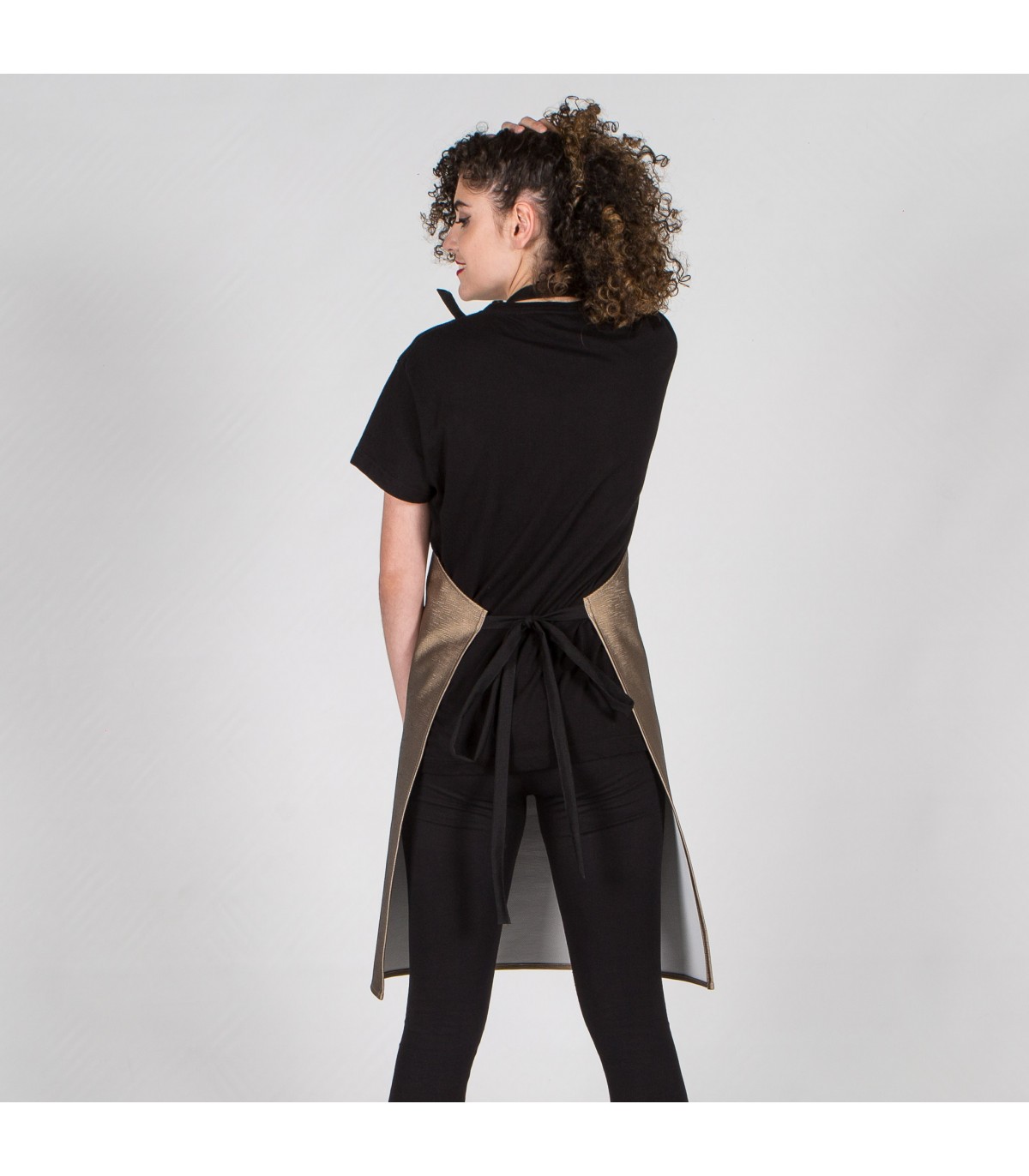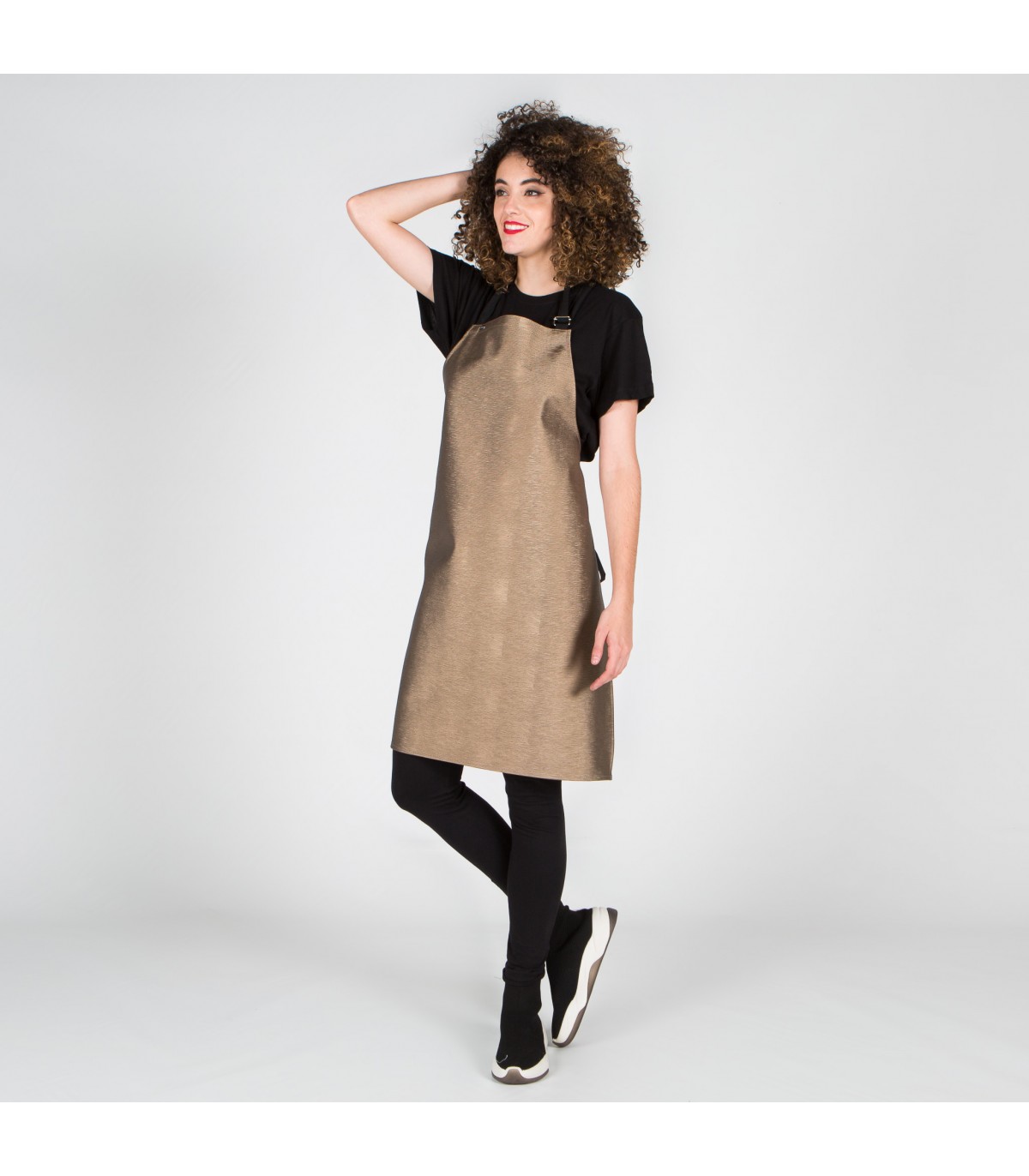 Delantal sin bolsillos, con peto, hebilla reguladora para ajustar el cuello y cintas para anudar en plana 100% Poliéster. Confeccionado en símil polipiel con textura de madera. Ideal para uniforme de peluquerías y centros de estética. SUPERFICIE 100% PU/PC SOPORTE 100% PES - 660 gr/m².