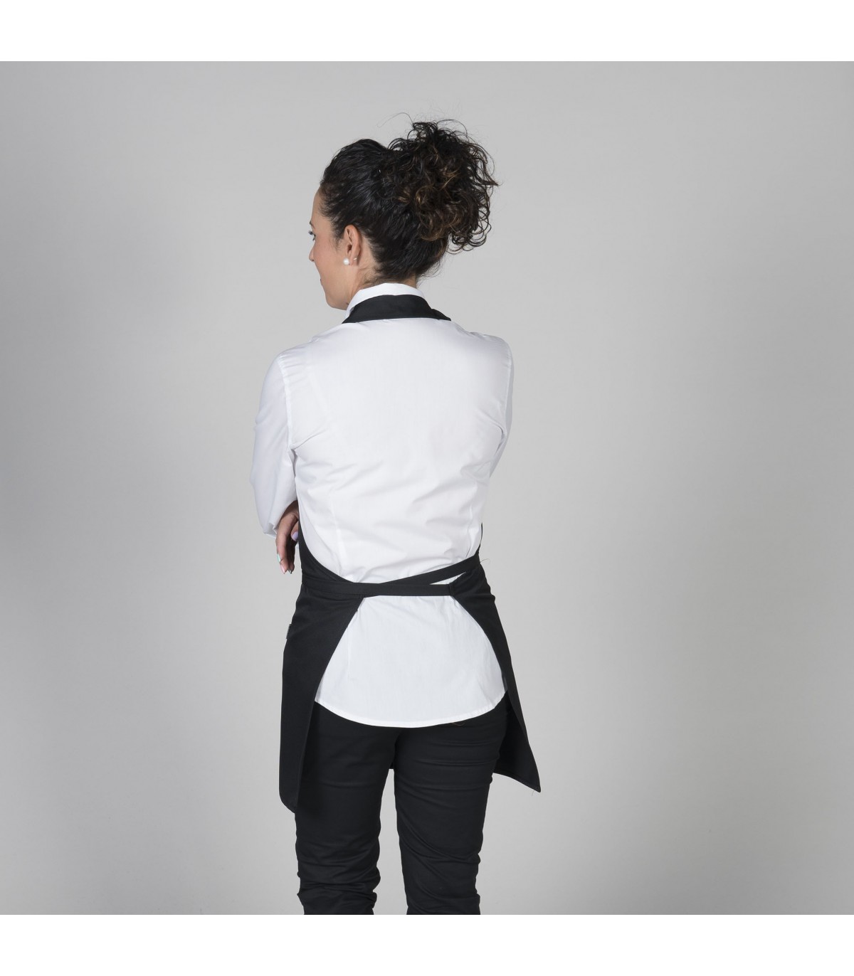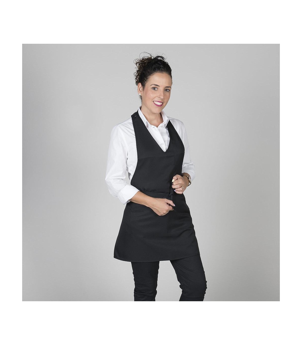 Delantal corto con peto tipo bistro. Confeccionado en 100% Poliéster, cuenta con un bolsillo para bolígrafo en el pecho y otro bolsillo en delantero. Sistema de ajuste del peto mediante botón de pastilla. Ideal para uniformes en bares, restaurantes, cafeterías, pastelerías, panaderías y comercio en general. SARGA 100% PES - 220 gr/m².