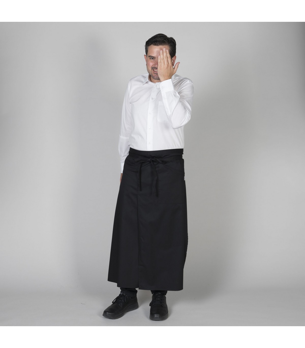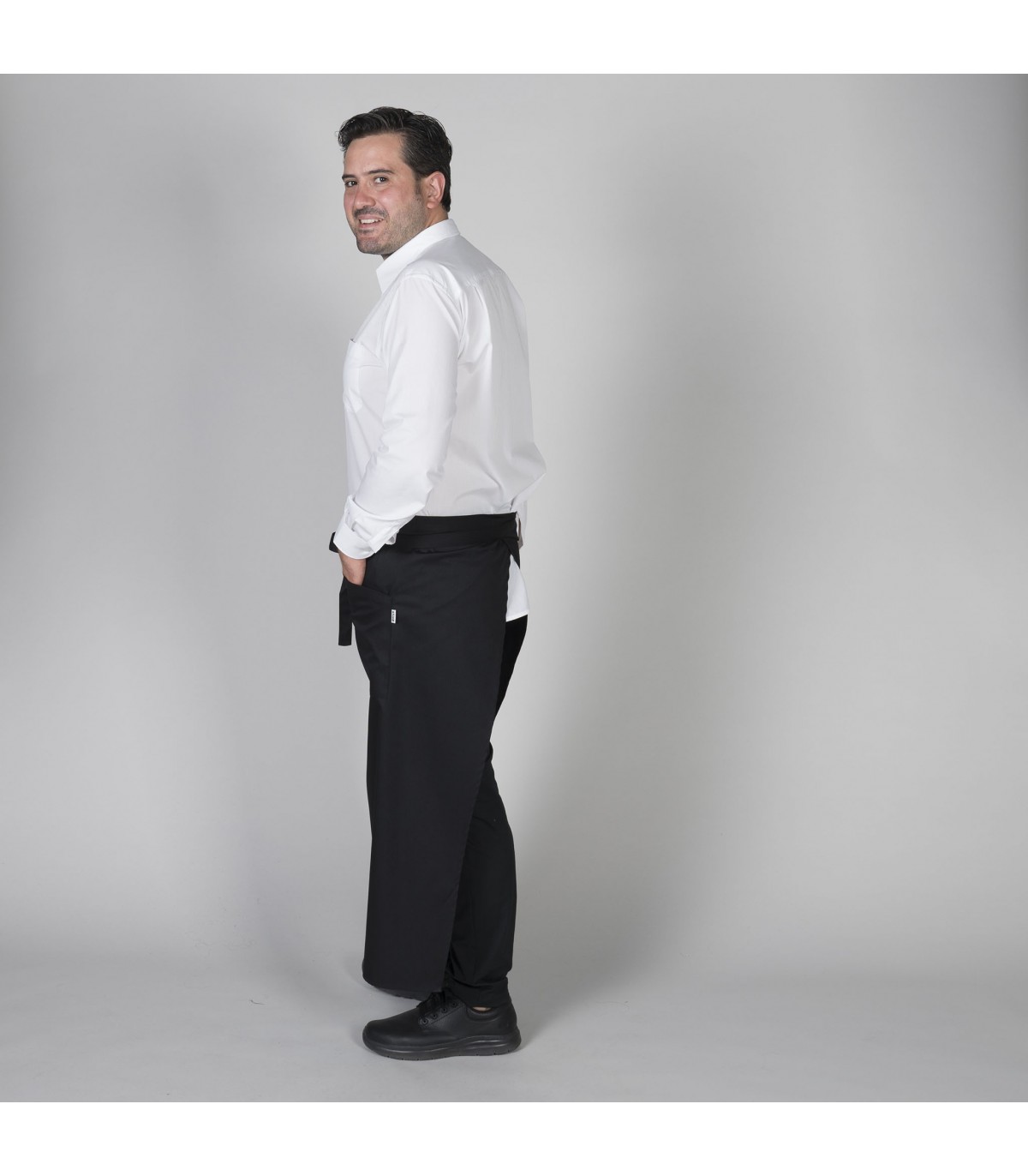 Delantal largo francés con bolsillo en lateral. Confeccionado con abertura central para proporcionar libertad de movimientos y mayor comodidad. Ideal para uniforme de camareros en bares, restaurantes y cafeterías, chefs o comercio. SARGA 65% PES 35% CO - 200 gr/m².