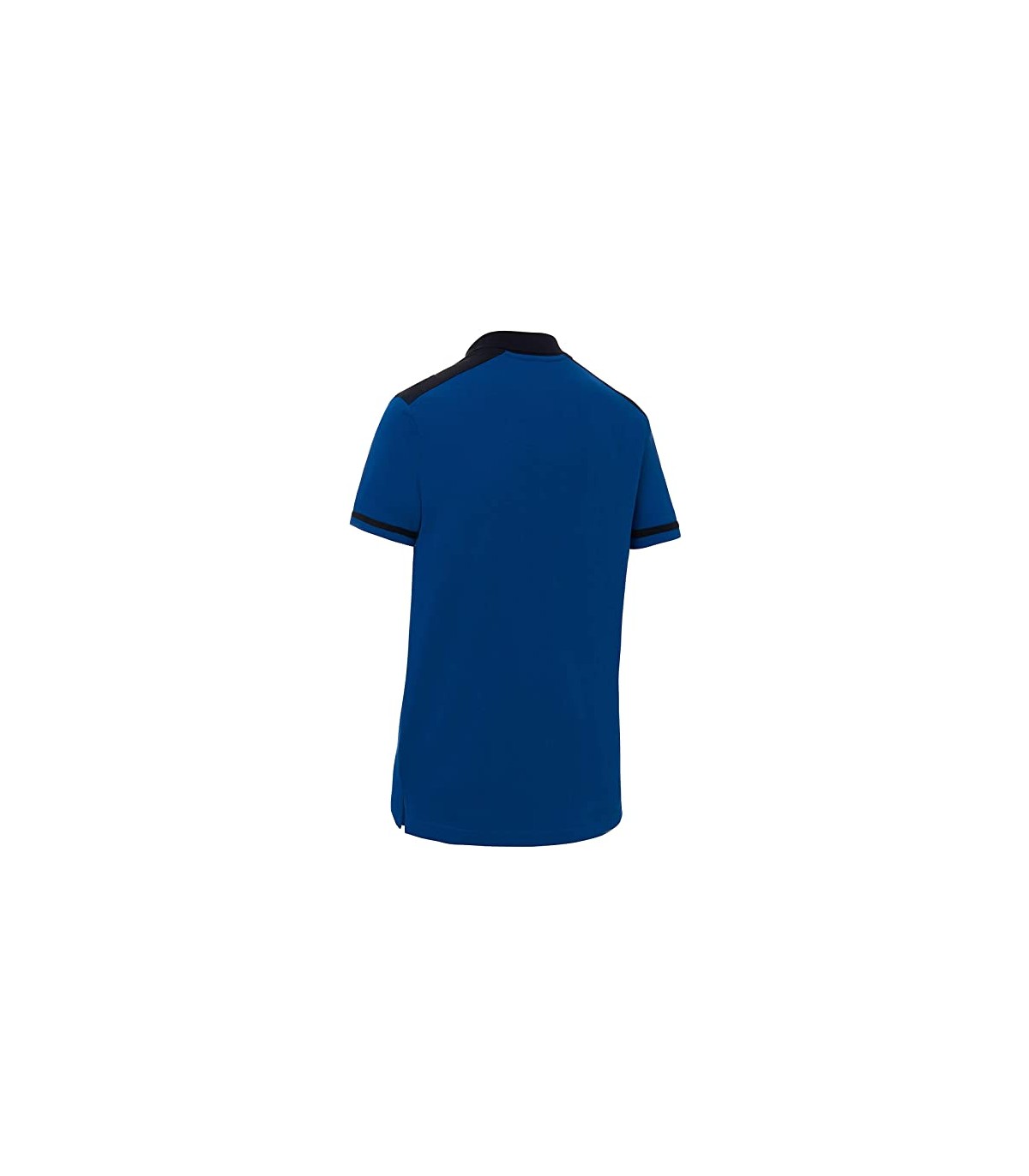 Polo de trabajo bicolor de manga corta. Con cuello camisero a contraste, y una cinta paralela al hombro también a contraste.
