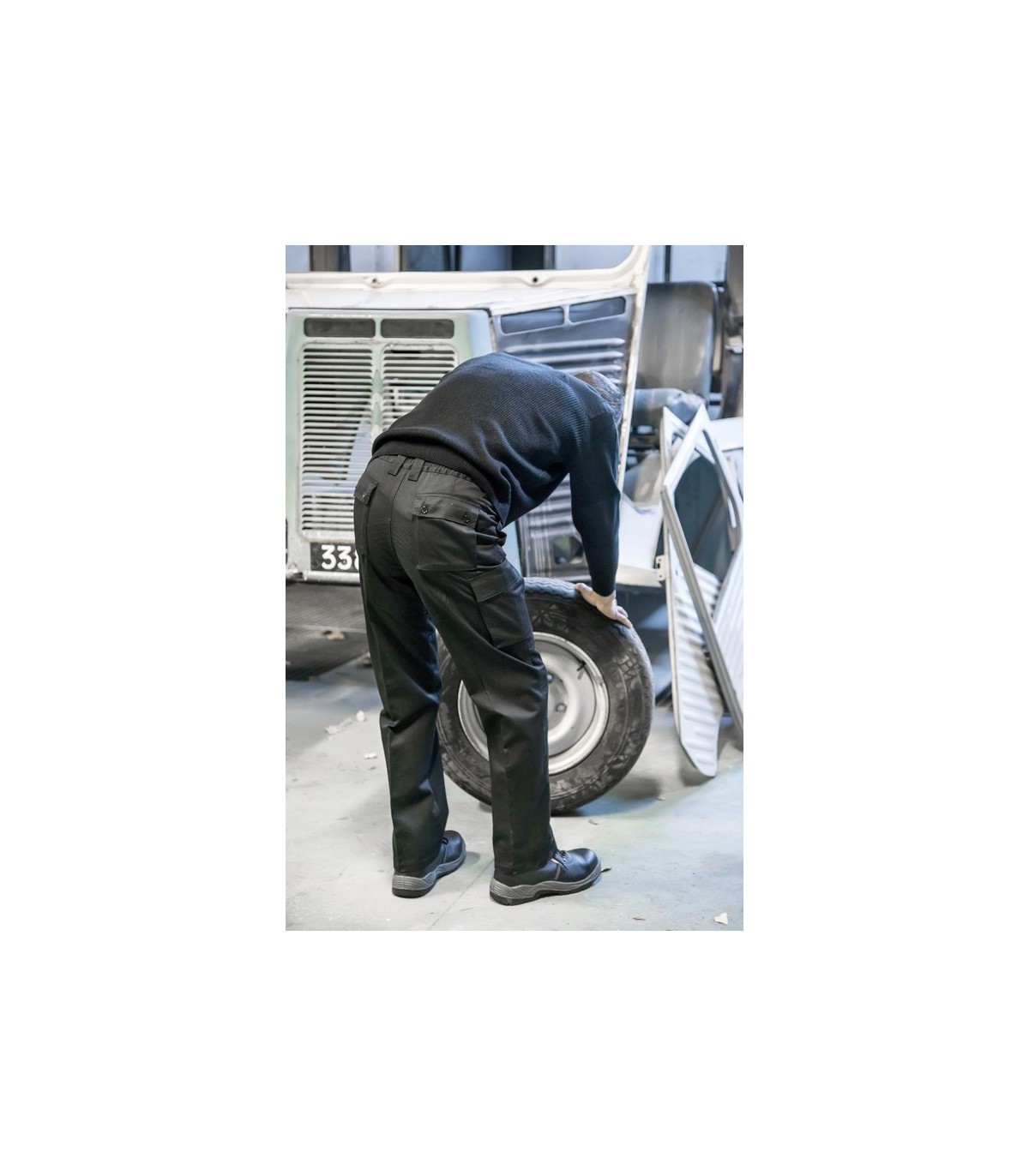 Pantalón de faena con bolsillo francés, bolsillos traseros con tapeta y botón, 2 bolsillos laterales con tapeta y velcro, culera y rodillas reforzadas. Composición: 65% poliéster, 35% algodón.