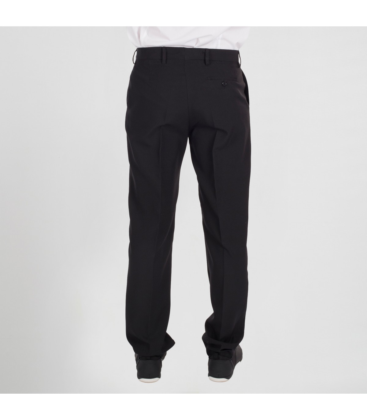 Pantalón unisex regular fit, con cremallera y botón, trabillas, dos bolsillos franceses en costados y otro de ojal trasero. Modelo clásico SIN PINZAS, confeccionado en MICROFIBRA de 100% Poliéster, un tejido repelente de líquidos, altamente transpirable, antibacteriano y que presenta gran tolerancia a salpicaduras de lejía. Ideal para uniforme de camarero en bares, restaurantes y cafeterías, recepción, transportes, oficina o comercio. MICROFIBRA 100% PES - 125 gr/m².
